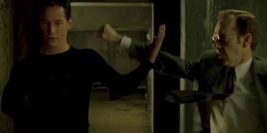 暗影将混沌翡翠的力量据为己有,变身为超级暗影,与超级索尼克抗衡。在这过程中,这只黑刺猬挡住了超级索尼克的首次攻击,动作酷似基努·里维斯饰演的尼奥在《黑客帝国》中成为“救世主”后,与史密斯探员战斗的场景。