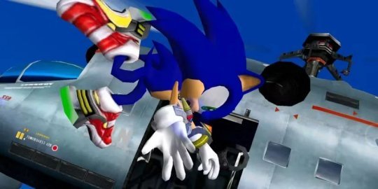 这与游戏《索尼克大冒险2》开头的情节相呼应,当时索尼克也是以类似的方式逃离GUN,从一架直升机上跳下,还把直升机的一扇门当作冲浪板。
