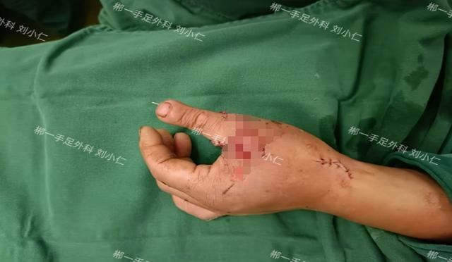 (主刀医师刘小仁术后观察患者拇指血运情况)