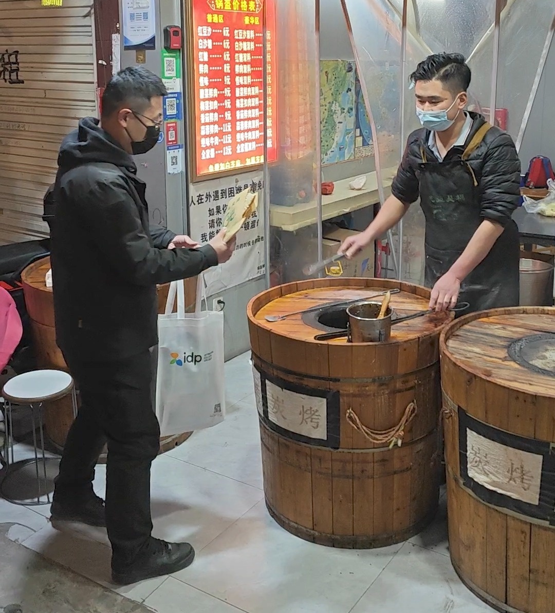 记者还采访到一名刚下班的女士,她凭着截图专门到现场领锅盔。“昨天晚上看到视频了,老板还在评论区留了言。之前没有来过这家店,就想下班后过来试试。我感觉这个事情很好玩,老板的心态很好。我感觉吃了这个锅盔后,新的一年会有好运。”她还表示,她已经将视频转发分享给了自己的朋友,希望传递更多快乐和福气。