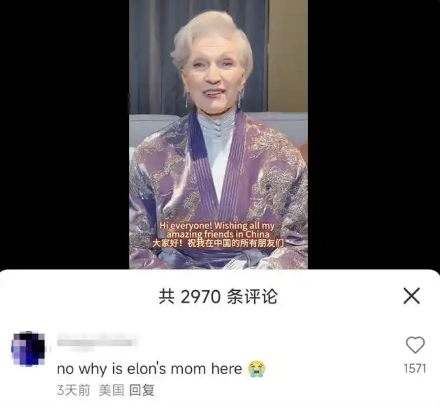 有网友在评论区回复“no why is elon's mom here”(她为什么在这儿),仅仅这一条回复就获得了数千点赞,一时间大量网友涌入,各种评论也是蜂拥而至。