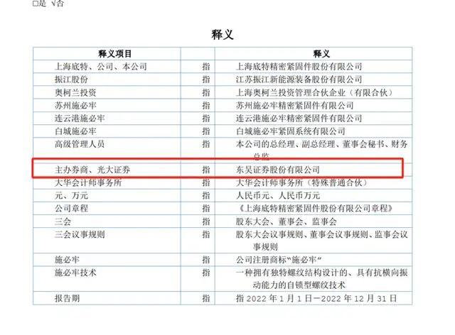 如在2022年年报中,也即是薛瑜婷上任当年的首份年度报告中,上海底特竟然在其主办券商的名字处赫然写上光大证券,而其真正的主办券商为东吴证券。