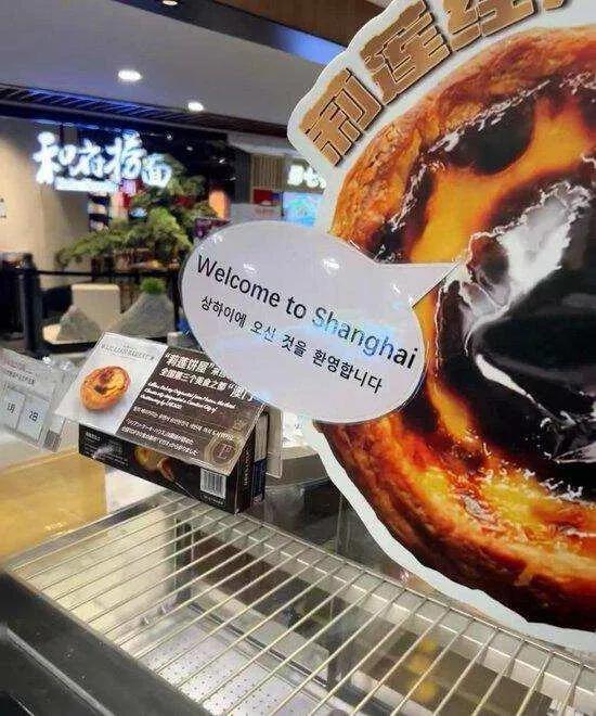 羊肉串、西瓜外,韩国人还迷上了蛋挞,上海新世界城的莉莲蛋挞店门口,韩国游客们正大排长队。从12月以来,差不多每天都有上千人韩国人来买蛋挞,全店80%的客人都是韩国人,整体客流到了之前的两倍。为了更好地服务韩国客人,店门口还贴上了韩文欢迎语。