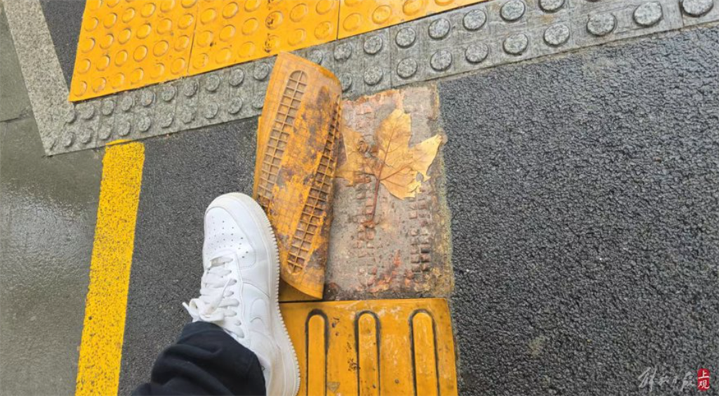 去年12月,上海12345市民热线曾接到多市民投诉称,在重庆南路与兴业路的人行道上,铺设的盲道砖屡屡翘起,给周边行人造成了很大的不便,对于视障人士更是不容忽视的安全隐患。