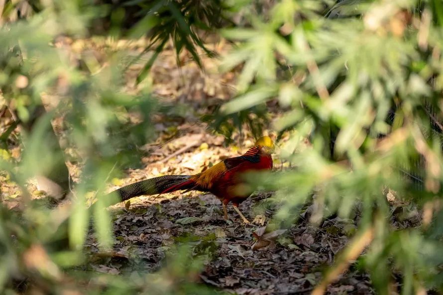 而且在面对复杂场景时,比如说下图中被大量竹叶遮挡的红腹锦鸡,SL3-S依然能轻易把对焦框锁定在动物的身上。