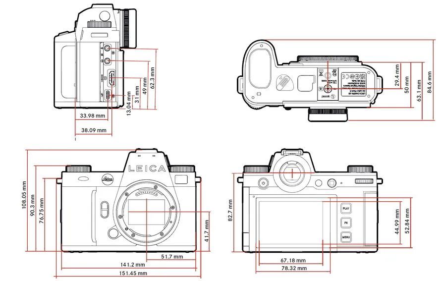 在进入全画幅无反时代后,相机机身共享部件、系列化设计日趋明显,对于不差钱的徕卡来说,这方面做得更为彻底,SL3-S与去年发布的SL3机身尺寸、重量近乎一致,新机重量为768克(不含电池、存储卡与机身盖),大小为151.45*108.05*84.6m,二者外观上最大差异是SL3-S军舰部“Leica”Logo从SL3的白字改为黑字。