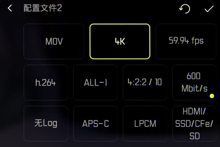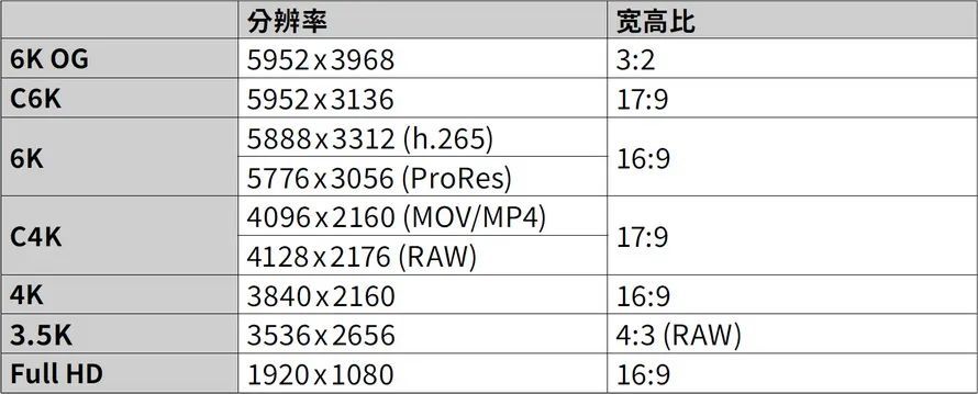 由于SL3-S支持视频格式众多,在此不一一介绍,只列出一些关键、常用格式,全画幅下:6K/30P OG(5952*3968,200Mbps,H.265),C4K&4K/30P(400Mbps,422 10bit,H.264);APS-C画幅:C4K&4K/60P(800Mbps,422 10bit,H.264),此外1080P视频最高支持180P升格,RAW视频支持6K(全画幅)、C4K(APS-C)、3.5K(4:3)三种分辨率。