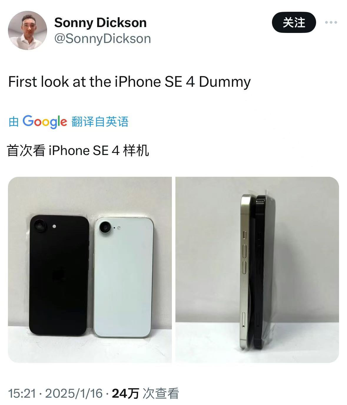 值得一提的是,此前有传闻称iPhone SE 4将命名为iPhone 16E,并且静音键将采用iPhone 15 Pro上首发的Action Botton按钮。但是从该评论员展出的图片来看,SE 4并没有采用Action Botton按钮,而是继续采用了拨片静音键的设计。