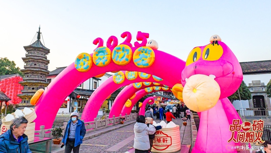 “古镇灯彩荟”既是春节期间民俗的传承与守护,又是上海文旅开拓“古镇新玩法”的创新探索。与此同时,南翔古镇的“蛇舞欣笼 巳巳如意”主题灯彩展、宝山罗店镇的“巳蛇逢双春•乐游金罗店”2025罗店暖春过大年灯会、金山枫泾古镇的“古镇寻年味,欢乐过大年”春节盛宴、青溪老街的“蛇行新岁,福聚青溪”新春主题迎新民俗灯会等古镇的活动也随之进入高潮。