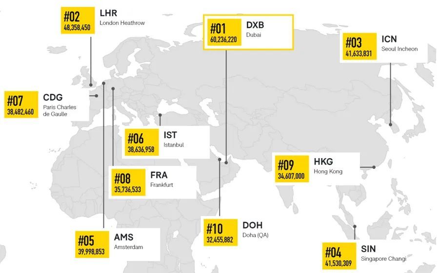 2024年全球最繁忙的十大国际机场