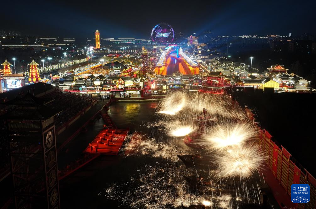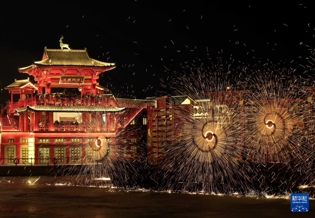 近日,河北省唐山市丰南区文化旅游街区河头老街运营部门打造的新春游园活动开幕。全新升级的大型实景铁花秀《唐王东征》、燃灯大典、鱼龙舞巡游和非遗年俗展演等多项活动,让游客沉浸式体验唐山的开埠文化、民俗文化、庙会文化。活动将于2月27日闭幕。