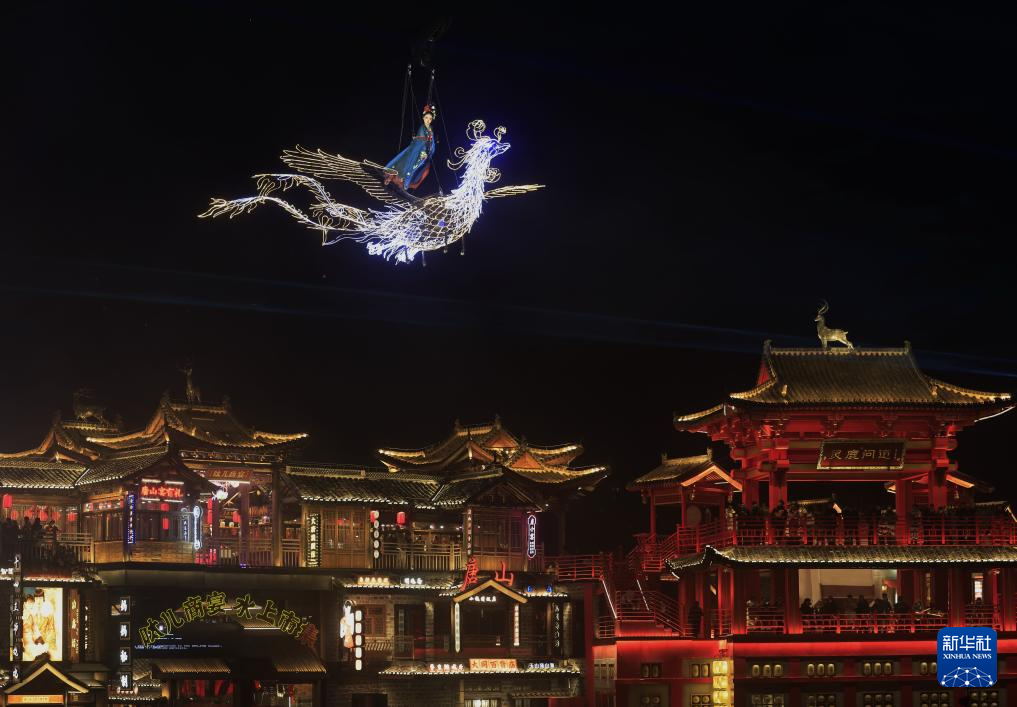 1月17日,演员在河头老街为游客表演“凤凰飞天”。