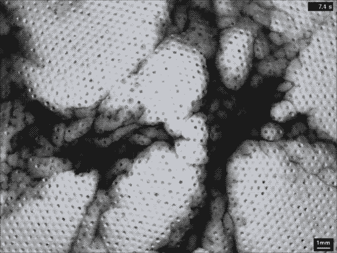 12、实验室中制造的翻滚的云,可以看到在面板上凝结的呈六边形的密集水滴