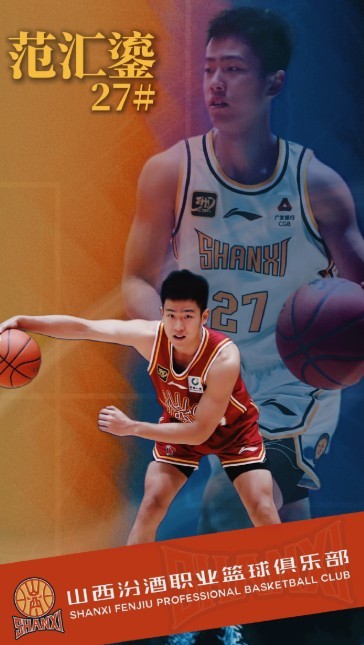 北京时间1月18日,山西男篮官方宣布,球队正式签下2022年CBA探花秀范汇鎏。