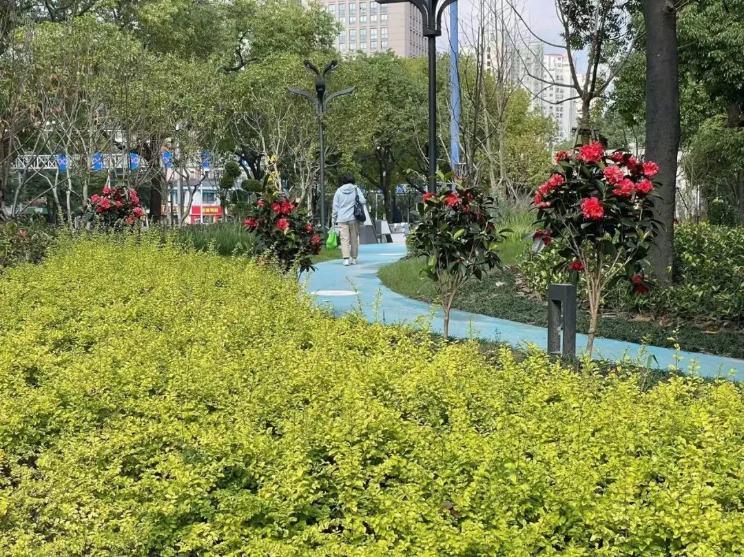 记者在杨浦区黄兴路看到,一家大型超市的内部绿地,经过绿化部门改造,变身成为“口袋公园”薇花园,不仅提升了街区的“颜值”,还串联起公交站和超市之间的慢行通道。