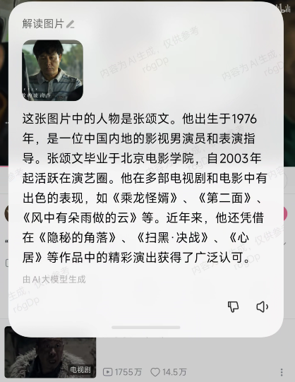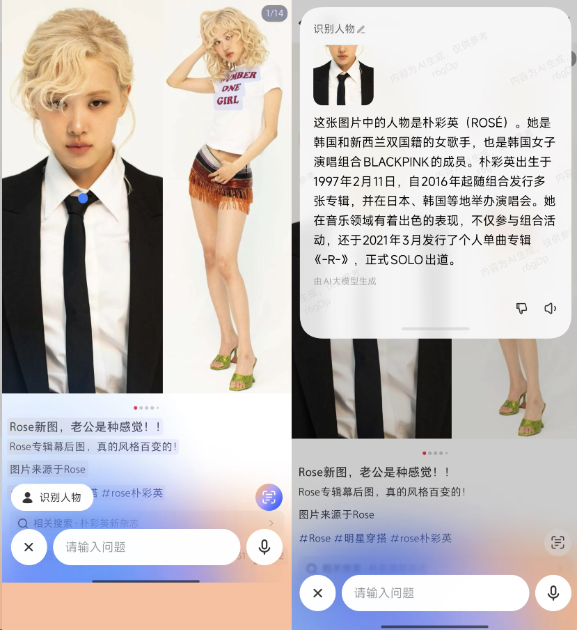 比如我摸鱼刷小红书,看到一个明星很好奇是谁。