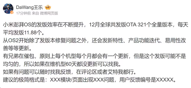 主要意思嘛,就是小米澎湃OS发版效率一直在提升,每个月也都有发新特性、改善易用性和迭代功能。