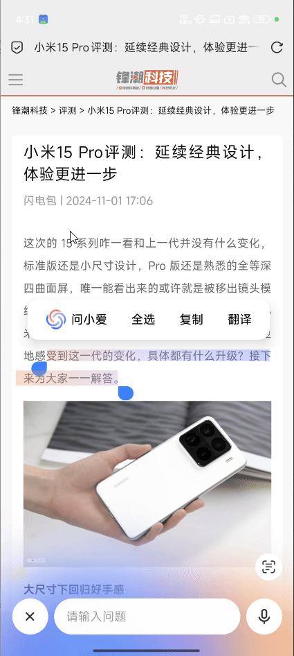 圈选对应文字或者图片后,可以让小爱帮咱们解读或者联网搜索答案。