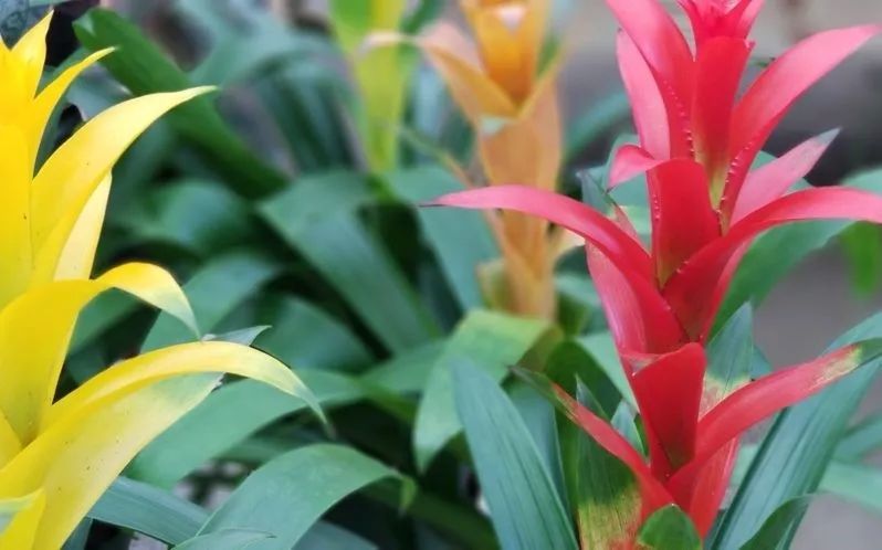 红心凤梨属于热带的观赏植物,在没开花之前,它可以保持常年翠绿的状态,一般是在冬春时节开花的花朵,有常见的红色、粉色、黄色等。