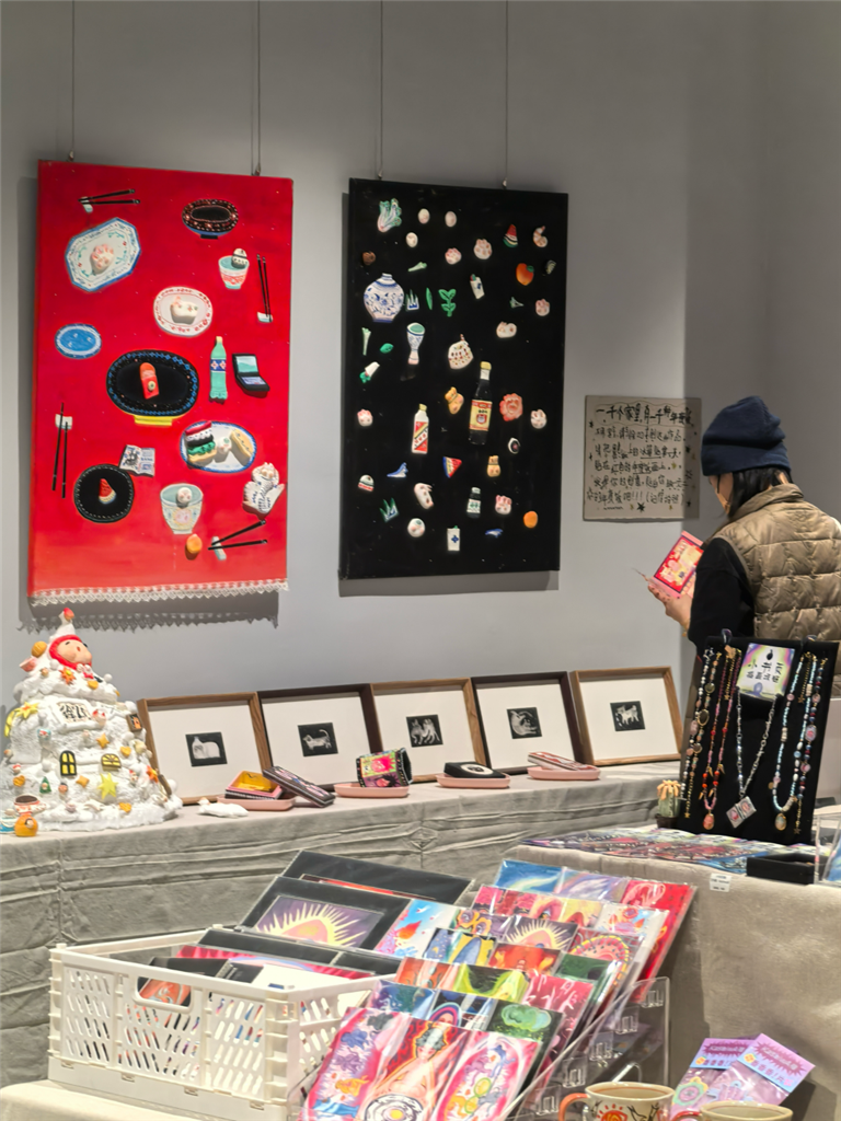 开幕当天,“艺术岛”内人头攒动,热闹非凡。众多艺术爱好者和市民游客纷纷前来参观体验,现场充满了浓厚的文化氛围。展览围绕“读者”、“生活”和“艺术”三个主题展现三个区域:文化墙、共创客厅和艺术馆。文化墙主要展示往期的《读者》杂志封面;共创客厅则是通过艺术家吴代杰老师的水晶边几、水晶椅的艺术装置呈现阅读生活场景,配以最新发行的《读者》杂志期刊、《读者日历2025》等生活类产品形成极具生活美学的阅读角;艺术馆板块可以看到第一期登岛青年艺术家徐20的艺术作品与艺术周边。