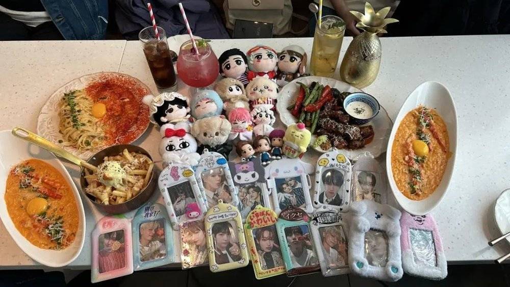 Yuyo和其他粉丝朋友一起吃饭,偶像小卡就能占领大半桌。