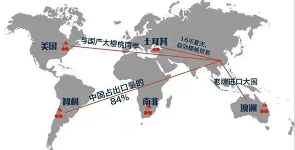 直到2016年,智利车厘子靠反季节输出和平民定位,打败美国车厘子,成了中国车厘子主要进口国。