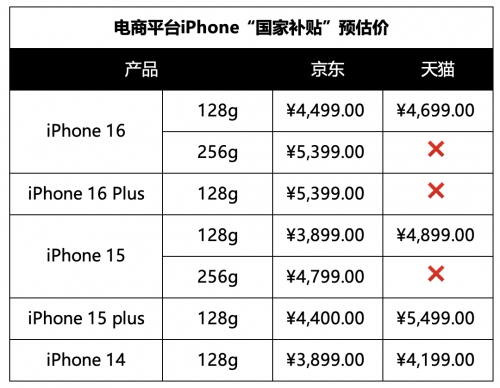 此外,根据国家补贴规则,记者预估了两大平台iPhone到手价,具体的到手价还需等明日见分晓。