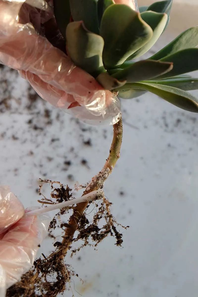 如果谨慎一些,还应当检查一下盆土和根系情况。若是简易花盆栽种的,到手后,可以把花盆倒扣过来,植物脱盆后检查根系是否健康,盆土是否有粉蚧虫(根粉蚧)。