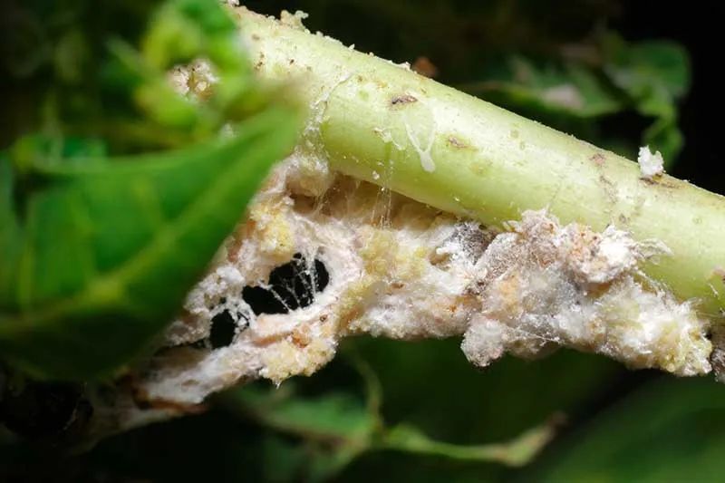 记住也要清理附着在植物枝叶上的白色棉絮状的东西,那些就是粉蚧虫的虫卵。