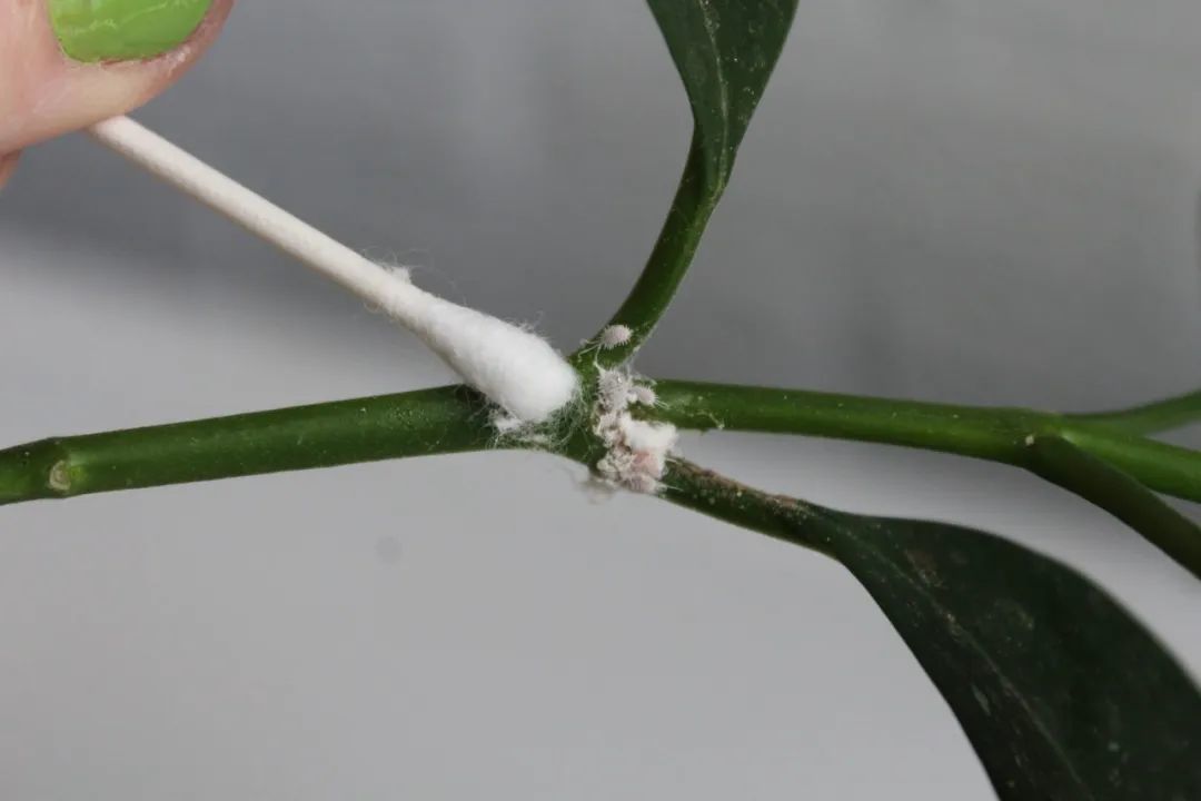 之后要清除掉表层土,再用棉签沾上75%浓度的医用酒精,涂抹在感染害虫的位置,这种方法也能清除害虫,但只对涂抹到的位置有效。