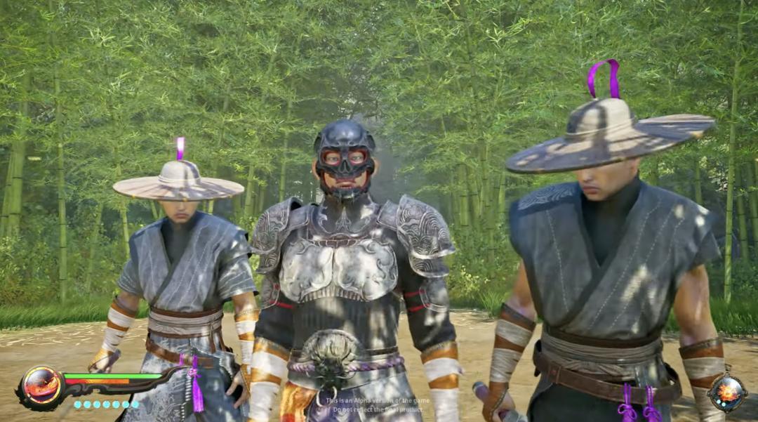 大概是被黑神话的销量给折服了,为了向强者学习, Demo 里添加了大量的空气墙,你只能在石头和竹林中间的空地上活动——当然,容易脚滑摔死的地方例外。