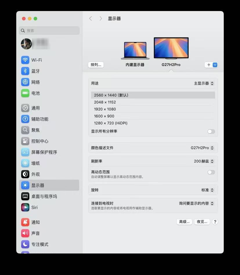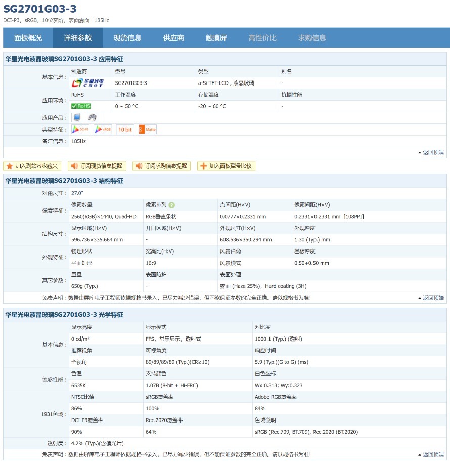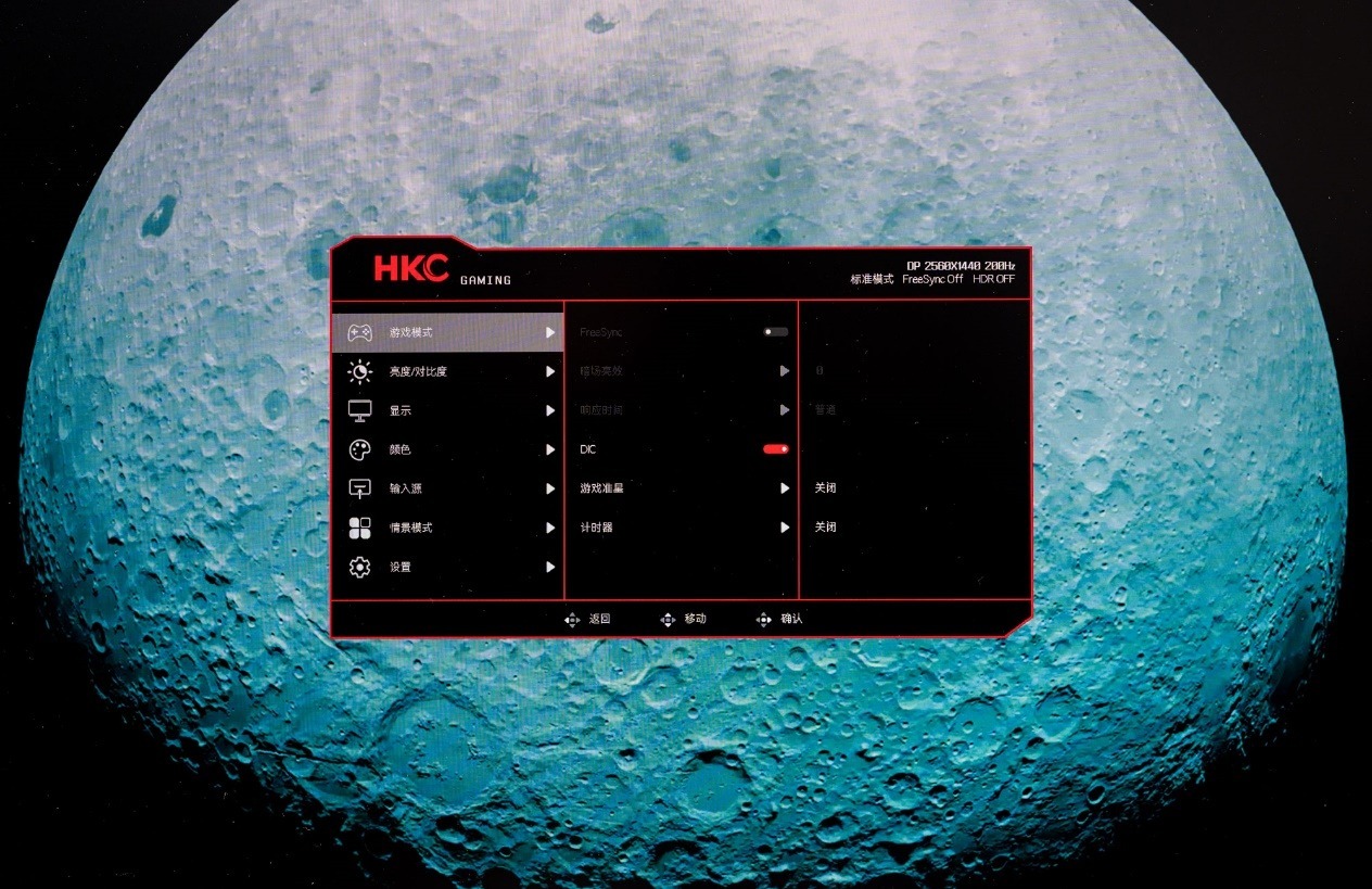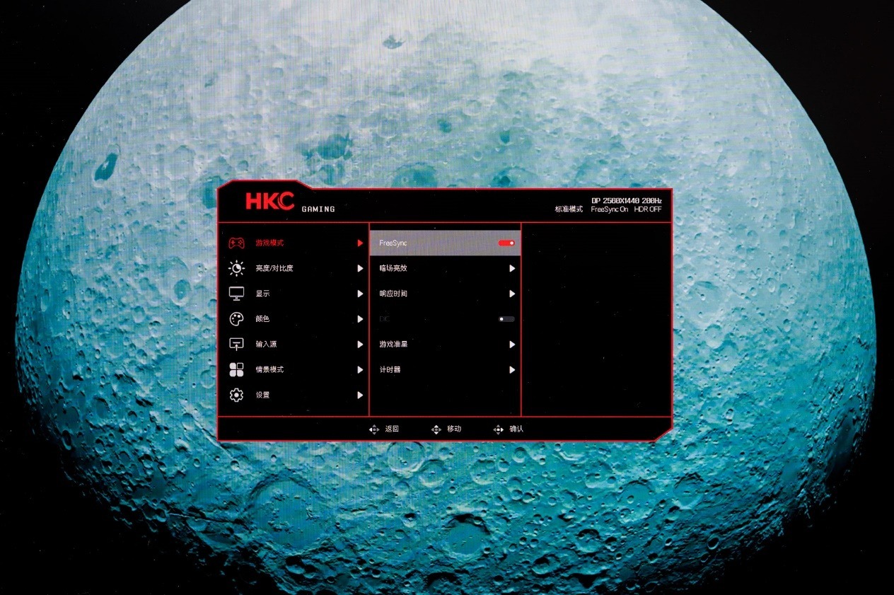了解过了外观,我们下面着重来看看这款产品是屏幕显示性能,HKC G27H2Pro显示器搭载了来自华星光电的SG2701G03-3面板,这是一款Fast-IPS快速液晶面板,提供 2560×1440 QHD分辨率 和 180Hz 原生刷新率,HKC将这款面板刷新率提升至200Hz,并具备 1ms GTG 响应时间。