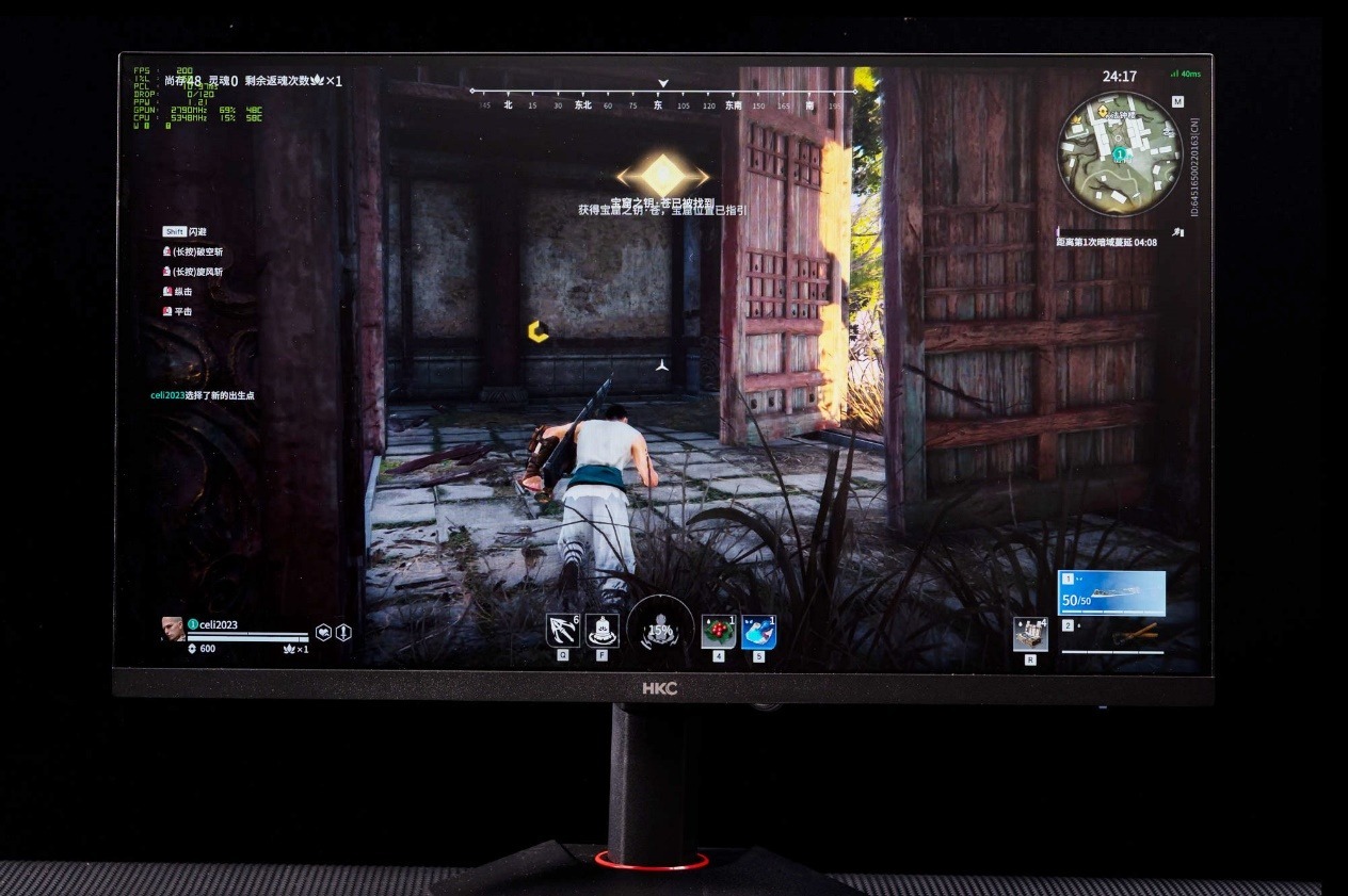 HKC G27H2Pro 的 200Hz 高刷新率 和 1ms GTG 响应时间 是一大亮点,这种配置能够显著减少游戏画面中的动态模糊和拖影现象,特别是在 FPS 和竞速类游戏中表现尤为突出。在测试中,无论是快速移动的场景还是高频击杀的画面,这款显示器都能保持清晰流畅,极大提升游戏的沉浸感。