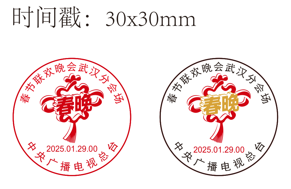 武汉邮政分公司在黄鹤楼公园内组建了春节联欢晚会武汉分会场临时邮局,另外在水果湖、鲁巷、江汉路邮政营业网点可选购2025春晚寄福邮资纪念封片,并加盖纪念邮戳。