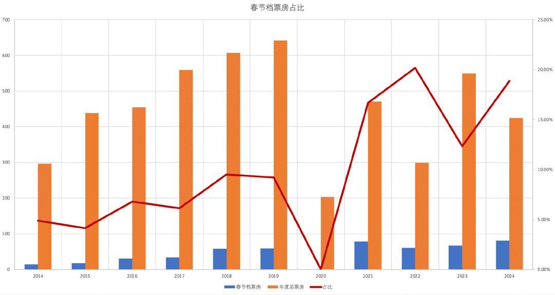 从数据里可以看到,春节档在2020年之后,正在越来越重要。