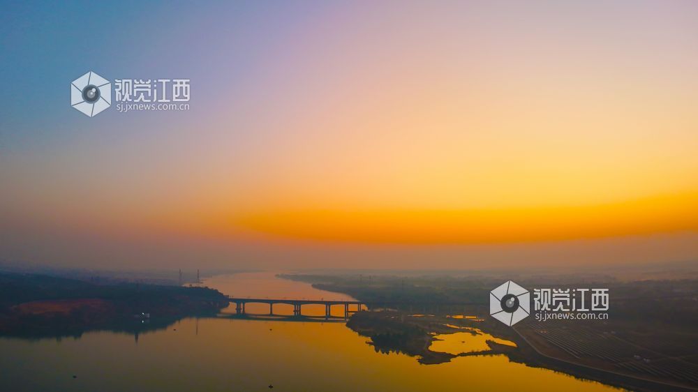 泰和赣江特大桥位于江西吉安泰和县,是昌吉赣高铁的重要桥梁。1月20日,冬日晨曦中,大桥在朝霞映照下与江面形成了一幅绝美画卷。视觉江西 高科峰 摄