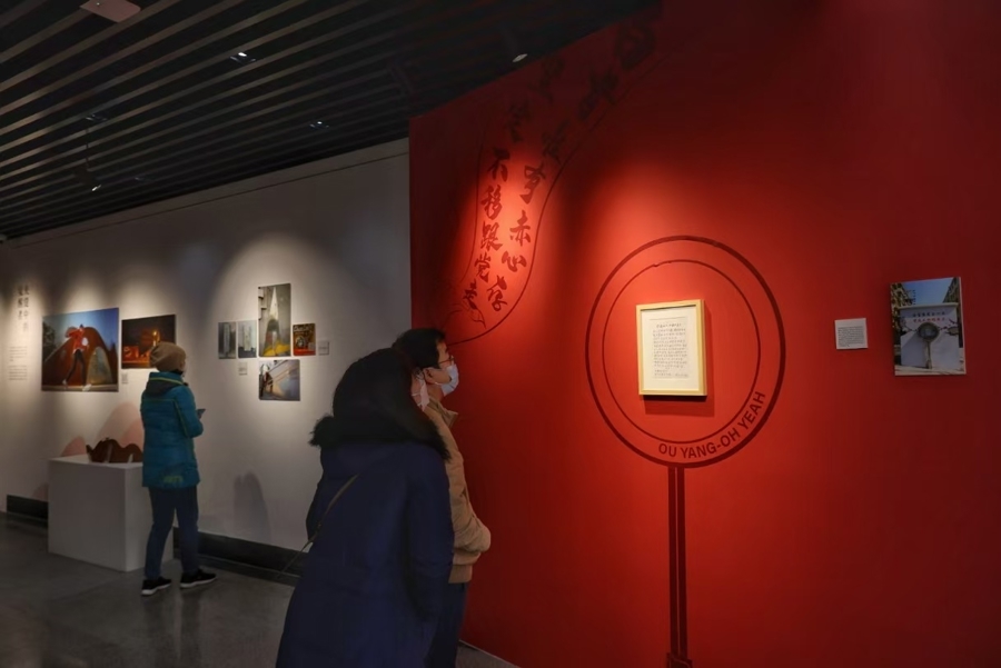 居民们正在看“百年欧阳”展。 叶辰亮摄