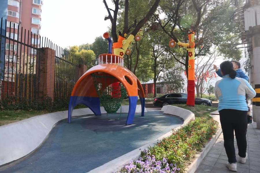 “潜水艇”的落地让欧阳路多了一处儿童设施。 叶辰亮摄