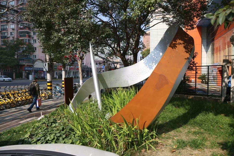 依托这次更新,在这住了几年甚至几十年的居民,遇见了独属于欧阳路的街区记忆:能阅览鲁迅的名篇佳作,也能领略工业遗存之美;能听到刘良模在大洋彼岸传唱《义勇军进行曲》,也能窥见普通居民营造美好家园的努力;能读到画家朱屺瞻百岁入党申请书,也能看到儿童友好街区的生长……如果说在欧阳路大连西路路口的“起点”雕塑,以国歌旋律为灵感,寓意欧阳路的更新以发掘街区故事为起点;那么位于欧阳路临平北路路口的“华章”雕塑,则寓意书写当下华章的人们正向未来出发。