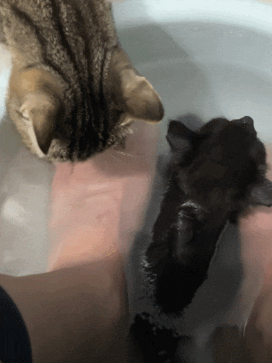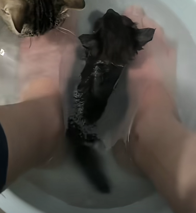 就这样,一人两猫,泡脚的泡脚,泡澡的泡澡,丝毫不耽误喝水的。