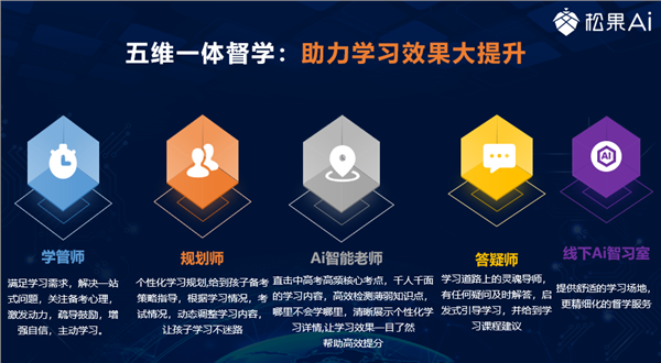 其中,松果Ai备考凭借学管师、规划师、Ai智能老师、在线答疑师以及线下Ai智习室五大维度,打破传统备考格局。