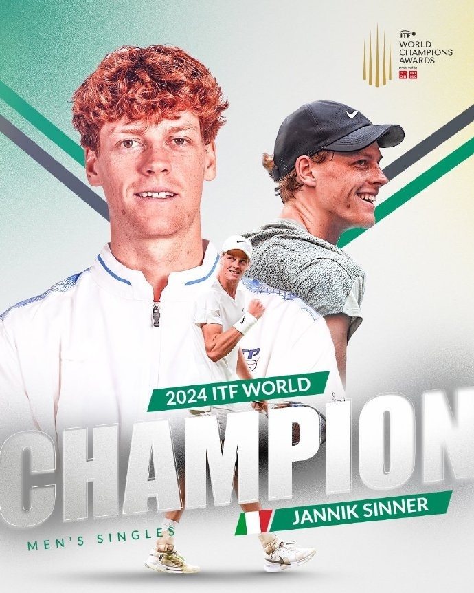 辛纳成为男单世界冠军,也是首位获此殊荣的意大利人,辛纳在去年拿到澳网和美网冠军,并且在年终总决赛收获冠军,他首次登上年终世界第一宝座,年度战绩为73胜6负,还率领意大利拿到戴维斯杯冠军。