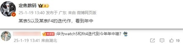 据数码博主爆料:某表5以及某表F4的迭代作,看到年中。结合产品型号名和评论区信息来看,这里提到的两款手表应该就是华为WATCH 5和FIT 4。虽然不知道具体是哪个月,但很可能是6月前后。