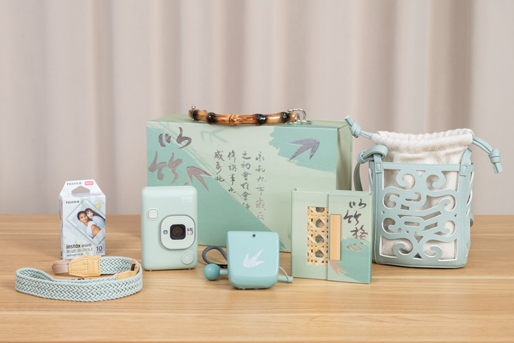 礼盒内包含:抹茶绿mini LiPlay数模一次成像相机,天青石迷你相纸、相机包、肩带、相册及木鱼鼓各一。天青色迷你相纸同样和新中式适配度满满,绿色闪金的边框可以让拍摄画面更有淡雅复古美,看着自己拍得美美的,心情自然更好了~