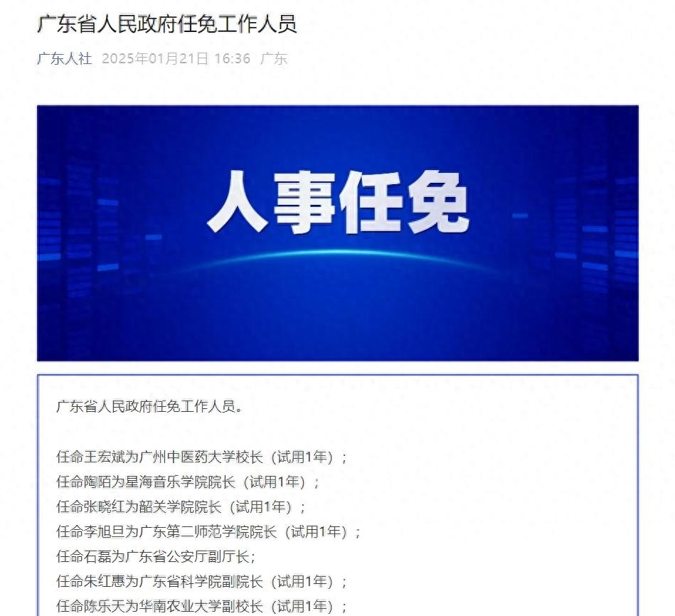 1月21日,据广东人社消息:广东省人民政府任免工作人员。