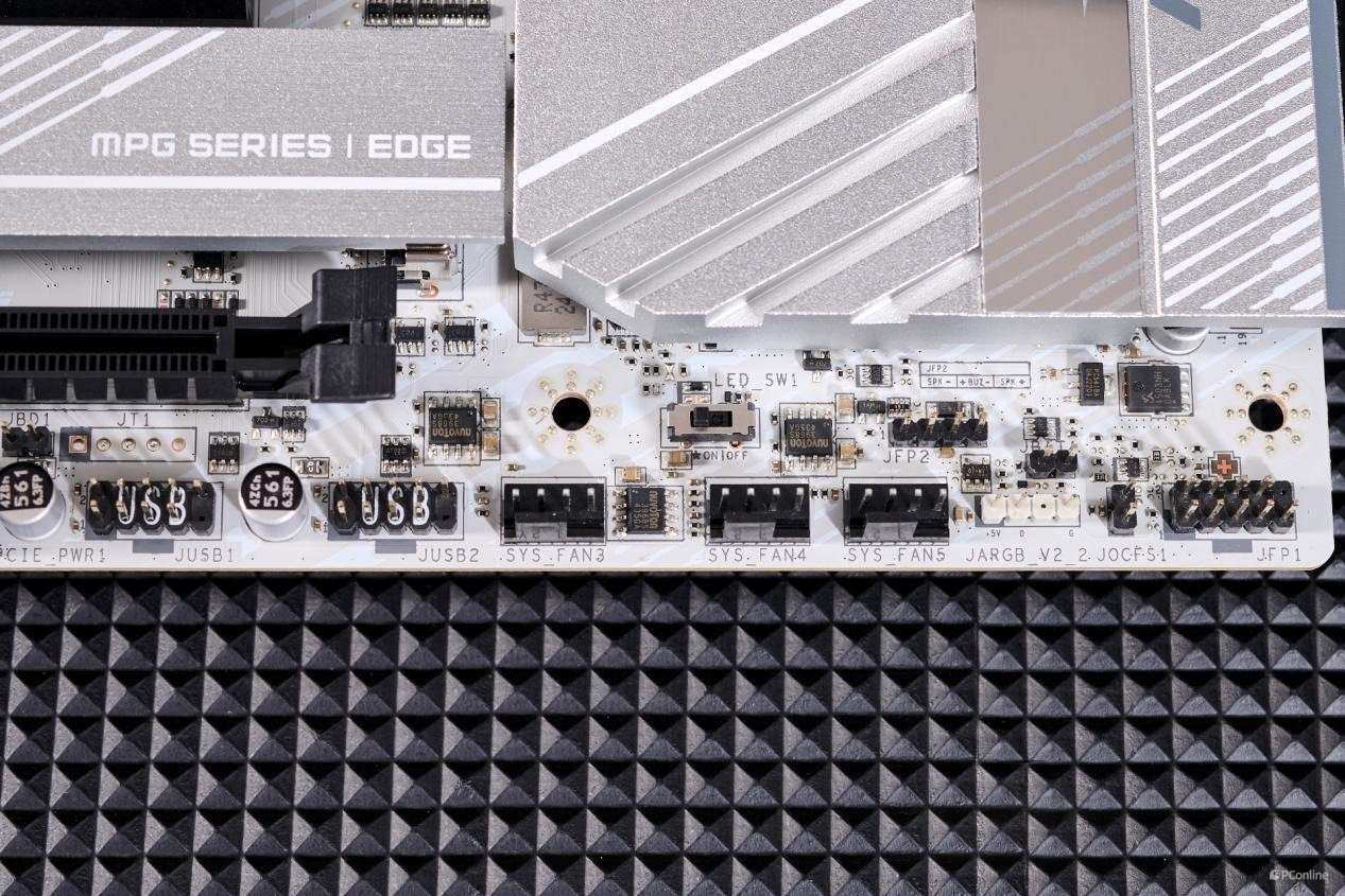24Pin主板供电接口紧邻EZ Conn接口,与微星新一代风扇和水冷组件配合使用,能够实现单线连接通信,从而摆脱了多线材连接带来的困扰。