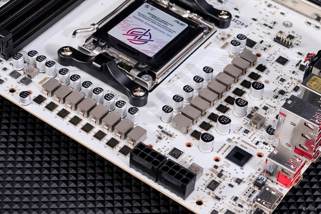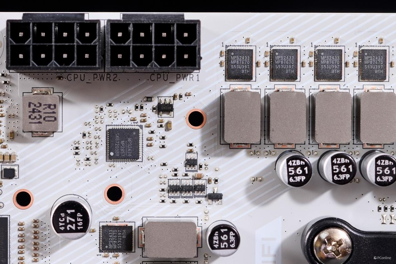 主板顶部左上角是双8Pin辅助供电接口,可以为处理器提供足够的电量。