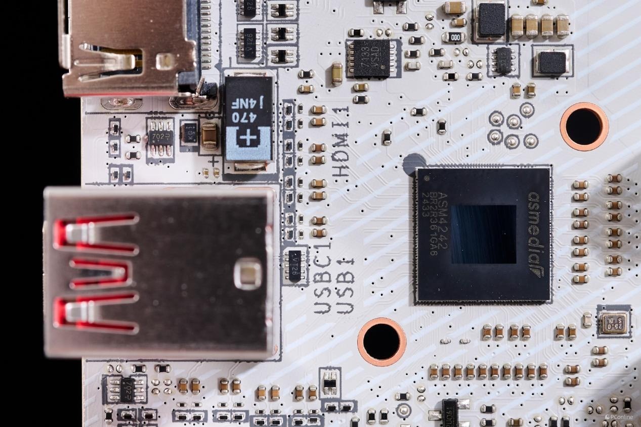 而ASM4242 USB4.0芯片高速传输时发热量不低,于是配备了单独的散热片