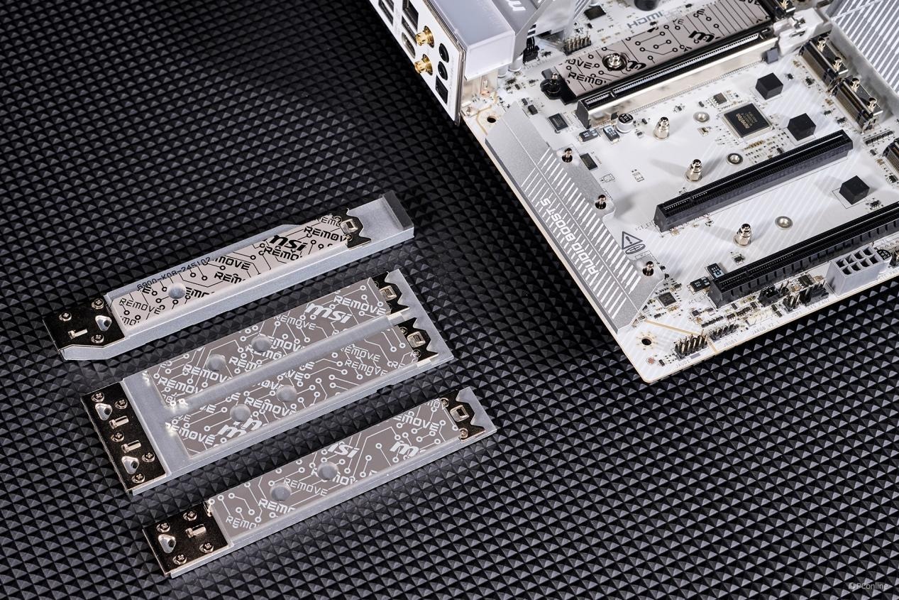 4个M.2固态硬盘均支持免螺丝M.2冰霜铠甲 II设计,3块散热马甲均可以独立进行拆装,简化了安装M.2固态硬盘的过程。