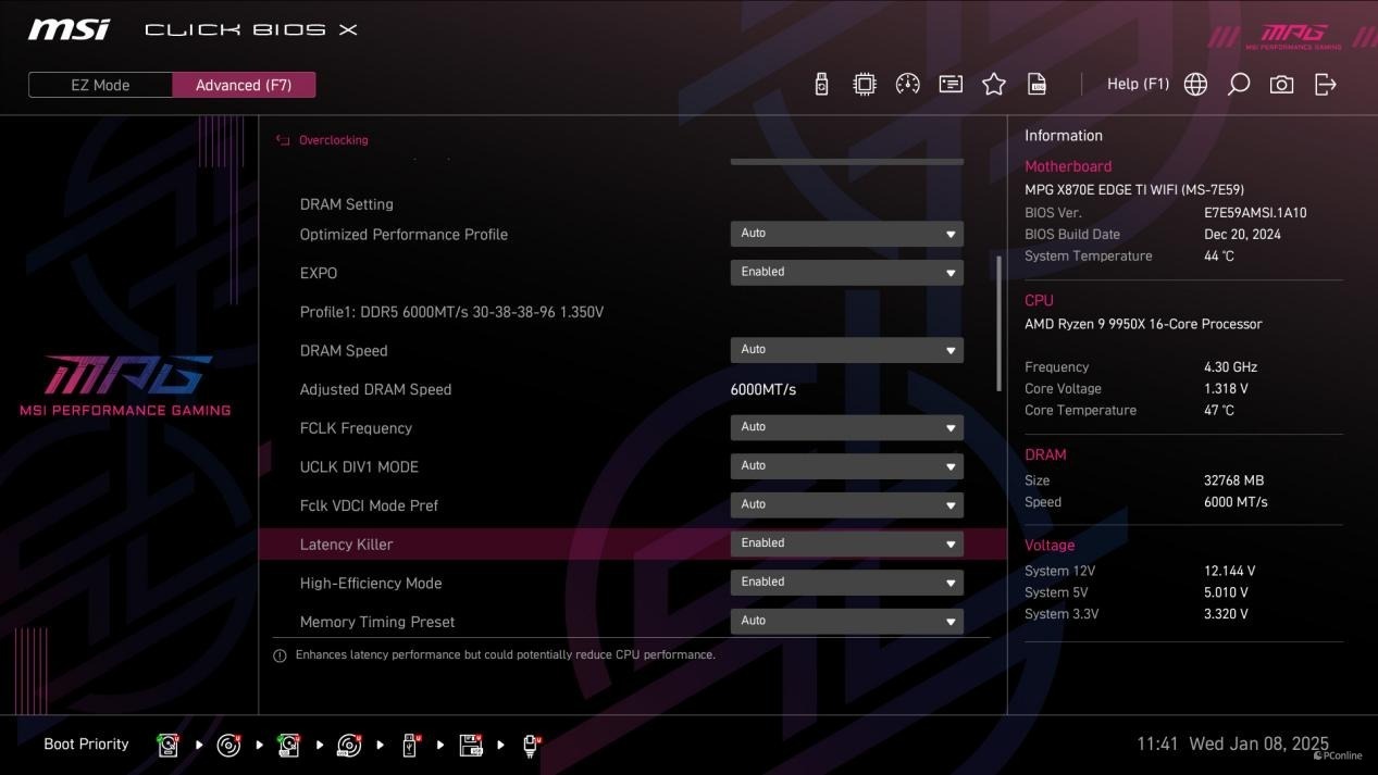 当然这里先说一下,目前MPG X870E EDGE TI WIFI刀锋钛主板BIOS为出厂原始版本,所以在某些性能和功能上仍未足够完善,因此此次测试仅代表MPG X870E EDGE TI WIFI刀锋钛主板原始BIOS版本的性能与功能表现。